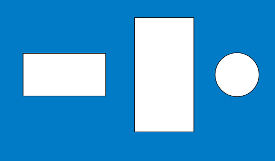 As discussed in the article on Phenomenal Geometry, objects that have different angular sizes – but which all seem to be near the same distance – will primarily appear to vary in apparent size. Figure 4 shows three objects that vary in shape; do they appear to vary in apparent distance as much as the earlier examples?