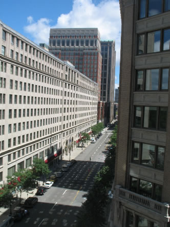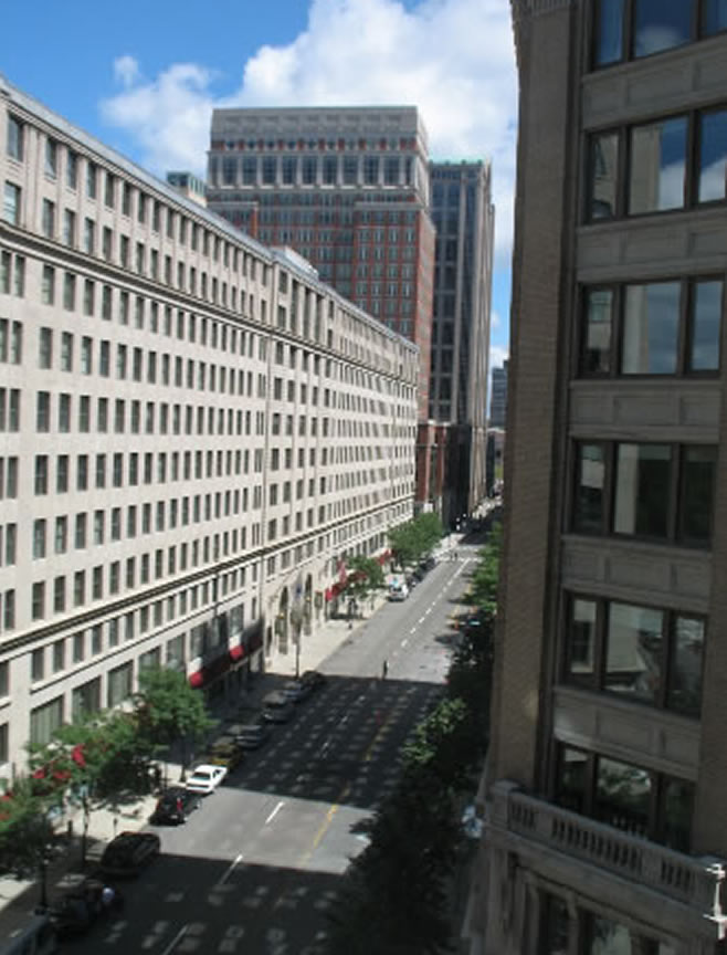 If one looks down a city street (see example in Figure 2, there are many lines in the image that converge toward a common point (the "vanishing point"). The sides of the street, the sidewalks, the traffic lanes and, depending on one's own vantage, even the foundations or markings on buildings, have smaller angular separations from one another as one scans across the image. In addition, there are often many groups of objects that share common shapes (automobiles, windows, trees, utility poles, and so on.