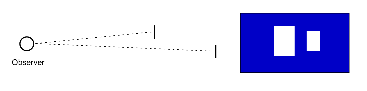 Consider the visual display shown in Figure 2. In this case, the observer is presented with two rectangles, of different size but having the same aspect ratio. The two rectangles are separated by a circular object. All three objects are actually at the same distance and all are observed monocularly.