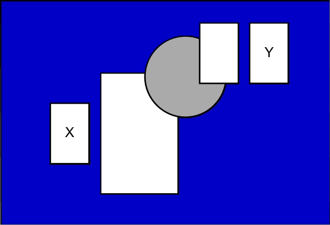 To conclude this introductory article, the Adjacency Principle has been demonstrated by the greater importance of cues between more adjacent objects. That is, X and the large rectangle involve a strong cue. Y and the small rectangle likewise involve a strong cue. The cue that might, in other circumstances, indicate that X and Y are at the same distance, is over-ridden by the cues that involve the more adjacent relationships.