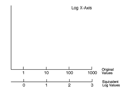 The following graphs demonstrate some of the differences between a linear plot and a log plot. (Double use of the terms "linear" or "log" would indicate that both axes on a particular graph involve the same type of scale, as in a log-log graph.)